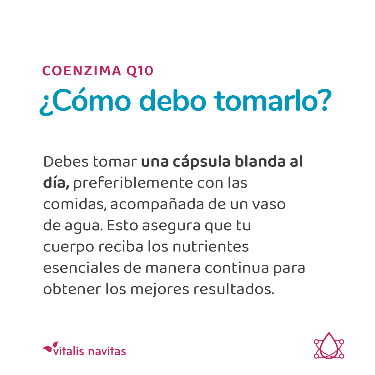 Suplemento dietario en cápsulas blandas, a base de coenzima Q10.
